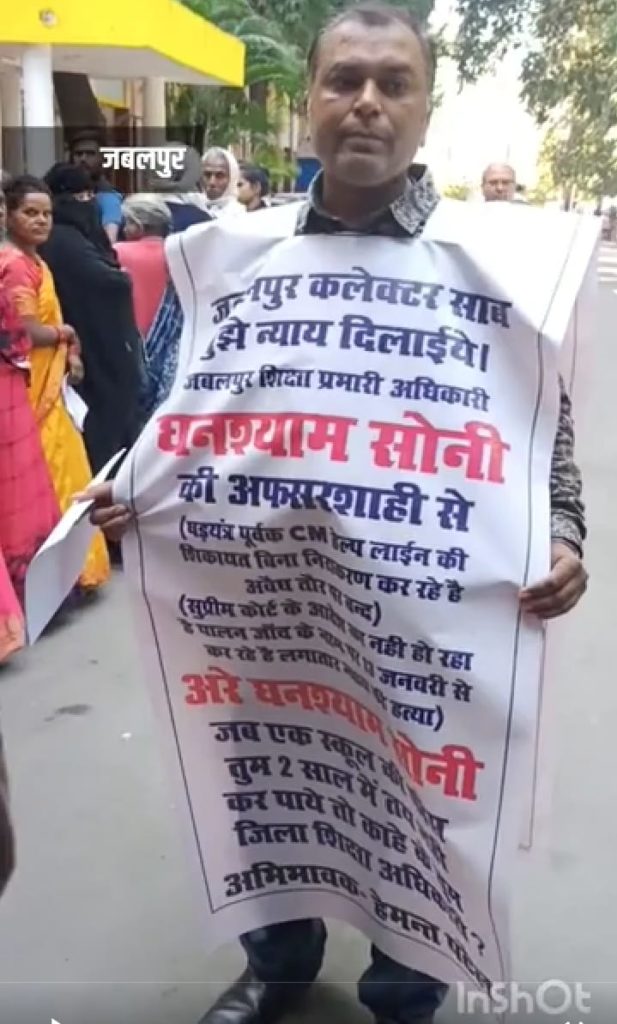 जबलपुर के जिला शिक्षा अधिकारी घनश्याम सोनी जानबूझकर सीएम हेल्पलाइन की शिकायतों का निराकरण नहीं करते हैं और जॉय सीनियर सेकेंडरी स्कूल को फायदा पहुंचाने के लिए सीएम हेल्पलाइन को बंद कर देते हैं। जब जिला शिक्षा अधिकारी एक भी स्कूल की फीस 2 साल से तय नहीं कर पाए तो वह किस बात के जिला शिक्षा अधिकारी हैं? यह आरोप कलेक्ट्रेट कार्यालय में शिकायत लेकर पहुंचे अभिभावक हेमंत पटेल ने लगाया हैं। वह कलेक्ट्रेट कार्यालय में शिकायत लेकर जनसुनवाई के दौरान पहुंचे थे।