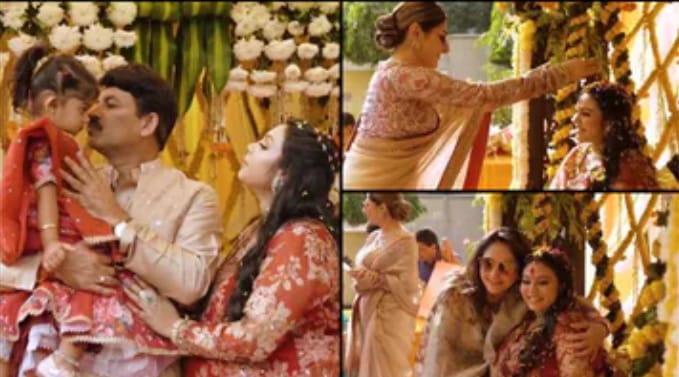 मनोज तिवारी ने पत्नी सुरभि तिवारी की गोद भराई के रस्म की झलकियां साझा की हैं. वीडियो में दिख रहा है कि पत्नी की गोद भराई की रस्म के लिए उन्होंने घर में बेहतरीन सजावट की है. बड़ी खुशी आने से पहले मनोज और सुरभि बेहद खुश नज़र आ रहे हैं. खास वीडियो शेयर करते हुए मनोज तिवारी ने लिखा, “कुछ खुशियों को हम शब्दों में बयां नहीं कर सकते..बस महसूस कर सकते हैं.” इस दौरान जहां सुरभि लाल रंग के लहंगे में नज़र आ रही हैं, वहीं मनोज तिवारी गुलाबी रंग की शेरवानी में दिखाई दे रहे हैं.