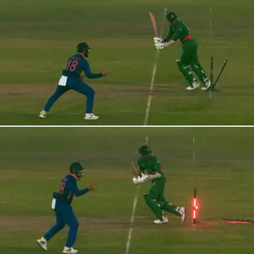 बांग्लादेश के तेज गेंदबाज इबादत हुसैन हिट विकेट हो गए। 39वें ओवर में कुलदीप सेन की बाउंसर को इबादत बैकफुट पर खेलने गए, लेकिन वो क्रीज में ज्यादा ही अंदर तक चले गए। उनका पिछला पैर स्टंप्स से लग गया, जिस कारण उन्हें हिट विकेट होकर पवेलियन लौटना पड़ा।