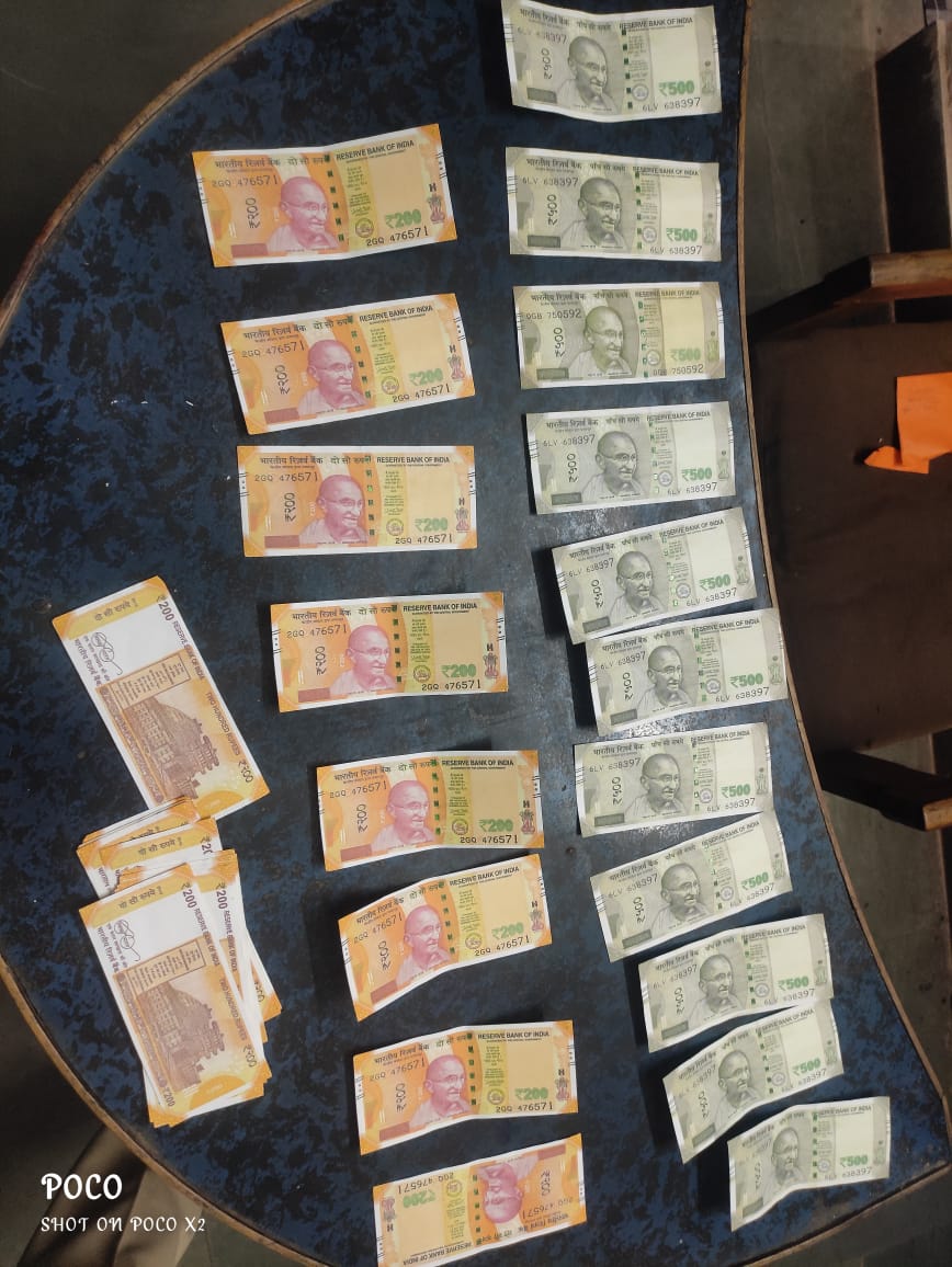 थाना मझोली में दिनॉक 28-9-21 की देर रात्रि में विश्वसनीय मुखबिर से सूचना मिली कि ग्राम नेगई में निरपत राजपूत की किराना दुकान के सामने स्कूटी लिये हुये ग्राम काकरखेडा निवासी अरविंद बर्मन खड़ा है, जो अपने पास 200 एवं 500 रूपये के नकली नोट रखे हुये है। सूचना पर तत्काल दबिश देते हुये मुखबिर के बताये हुलिये के व्यक्ति को पकडा एवं नाम पता पूछा जिसने अपना नाम अरविंद बर्मन पिता बिहारीलाल बर्मन उम्र 27 वर्ष निवासी काकरखेडा थाना कटंगी बताया, जो तलाशी लेने पर फुलपैंट की जेब में रखे पर्स में 500 रूपये के 11 नोट एवं 200 रूपये के 24 नोट इस प्रकार 10 हजार 300 रूपये के नकली नोट रखे मिला, उपरोक्त नकली नोटो के दाहिने हिस्से के खाली जगह पर गांधी जी की फोटो नहीं दिख रही थी तथा करेंसी नोट के दाहिने हिस्से की पट्टी मे नोट की राशि भी नही दिख रही थी, 200 रूपये के 24 नोट में एक ही सीरियल नम्बर लिखे हुये थे, इसी प्रकार 500 के 10 नोटों पर एक हीे सीरियल नम्बर तथा 500 के 1 नोट पर दूसरा सीरियल नम्बर लिखा था।