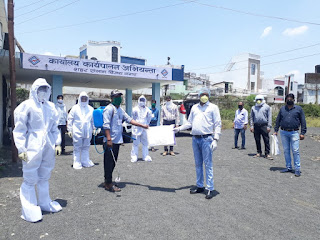 कार्मिकों को पी.पी.ईकिट वितरित किया गया ताकि उन्हें संक्रमण से बचाया