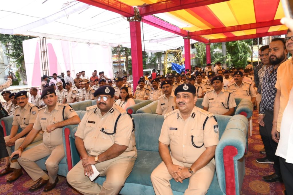 आज दिनॉक 6-9-2022 को पुलिस टीम को प्रोत्साहित करने के लिये सराफा एसोशियेशन द्वारा आयोजित सम्मान समारोह का आरंभ वृक्षारोपण से करते हुये अतिरिक्त पुलिस महानिदेशक जबलपुर जोन, जबलपुर श्री उमेश जोगा (भा.पु.से.),, पुलिस उप महानिरीक्षक जबलपुर रेंज जबलपुर श्री आर. आर. एस. परिहार (भा.पु.से.),, पुलिस अधीक्षक जबलपुर श्री सिद्धार्थ बहुगुणा (भा.पु.से.), अतिरिक्त पुलिस अधीक्षक शहर श्री गोपाल खांडेल, अतिरिक्त पुलिस अधीक्षक अपराध श्री समर वर्मा, उप पुलिस अधीक्षक अपराध श्री सुशील चौहान , उप पुलिस अधीक्षक अपराध /कानून व्यवस्था सुश्री अंकिता खातरकर, नगर पुलिस अधीक्षक कोतवाली श्री प्रभात शुक्ला, नगर पुलिस अधीक्षक गोहलपुर श्री अखिलेश गौर, थाना प्रभारी लार्डगंज श्री मधुर पटैरिया, थाना प्रभारी कोतवाली श्री अनिल गुप्ता, थाना प्रभारी मदनमहल श्री नीरज वर्मा, प्रभारी रेडियो श्री मनीष राय, प्रभारी कन्ट्रोलरूम श्री रविन्द्र सिंह, रक्षित निरीक्षक श्री सौरभ तिवारी, सहायक उप निरीक्षक रामसनेह शर्मा सहित 116 पुलिसकर्मियों को स्मृतिचिन्ह भेंट करते हुये सम्मानित किया गया ।