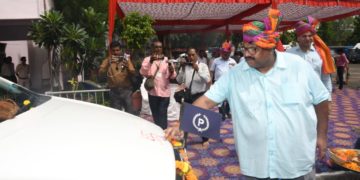 विजयादशमीं के अवसर पर पुलिस लाईन जबलपुर में किया गया शस्त्र एवं वाहन पूजन