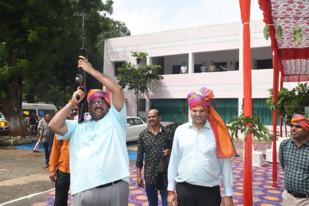 बुराई पर अच्छाई तथा असत्य पर सत्य की विजय के पर्व विजयादशमी पर परंपरागत् आज दिनॉक 5-10-2022 को प्रातः 11 बजे विजय दशमी के अवसर पर पुलिस लाईन जबलपुर में अतिरिक्त पुलिस महानिदेशक जबलपुर जोन, जबलपुर श्री उमेश जोगा (भा.पु.से.), पुलिस उप महानिरीक्षक जबलपुर रेंज जबलपुर श्री आर.आर.एस. परिहार, पुलिस अधीक्षक जबलपुर श्री सिद्धार्थ बहुगुणा (भा.पु.से.), कलेक्टर जबलपुर डॉ. इलेैयाराजा टी. द्वारा अतिरिक्त पुलिस अधीक्षक शहर श्री गोपाल खाण्डेल, अतिरिक्त पुलिस अधीक्षक (ग्रामीण) श्री शिवेश सिंह बघेल, की उपस्थिति में शस्त्र एवं वाहनों की पूजा की गयी। पूजन एवं हवन कार्यक्रम की समाप्ति के उपरांत सभी ने हर्ष फायर किया।