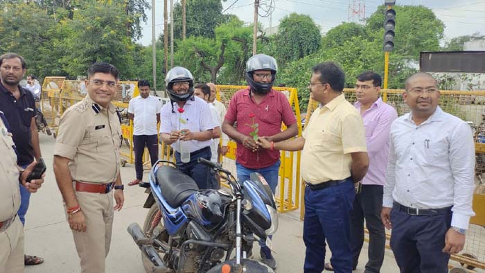 हेलमेट धारकों का कलेक्टर व एसपी ने किया सम्मान